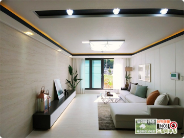 아이보리의 은은한 컬러가 깔끔하게 느껴지는 거실입니다.