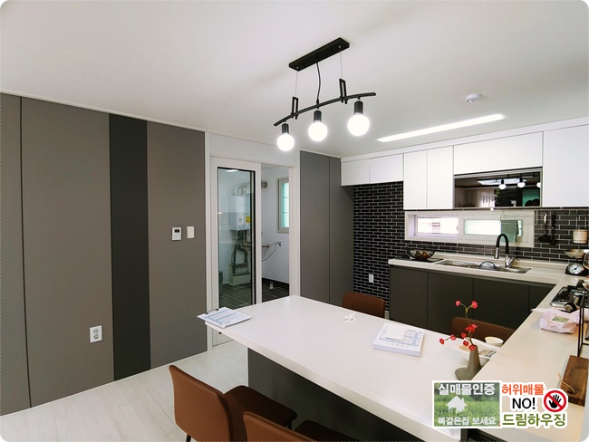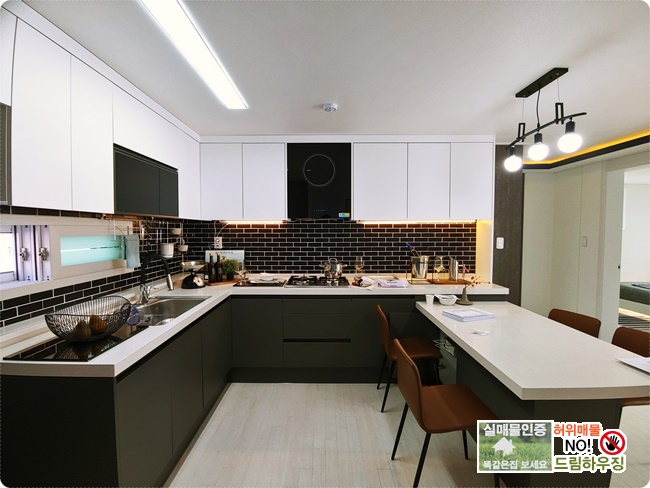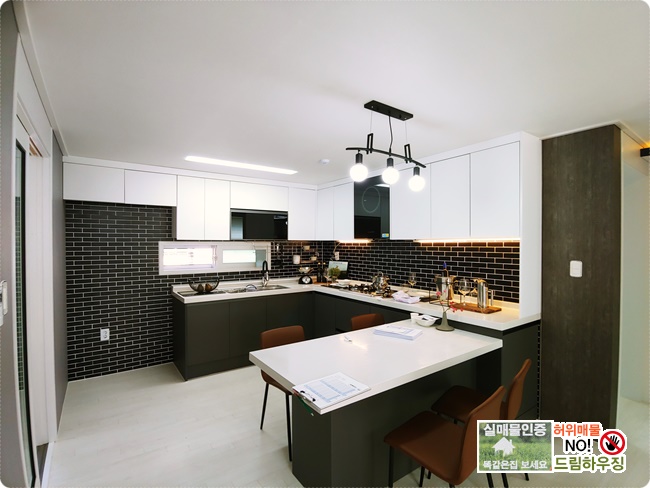 블랙&화이트의 인테리어로 깔끔한 주방입니다.