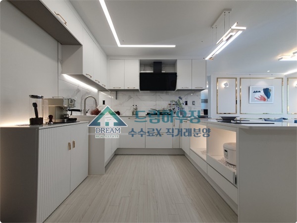 ㄷ자형구조의 주방으로 화이트톤 인테리어로 깔끔합니다.