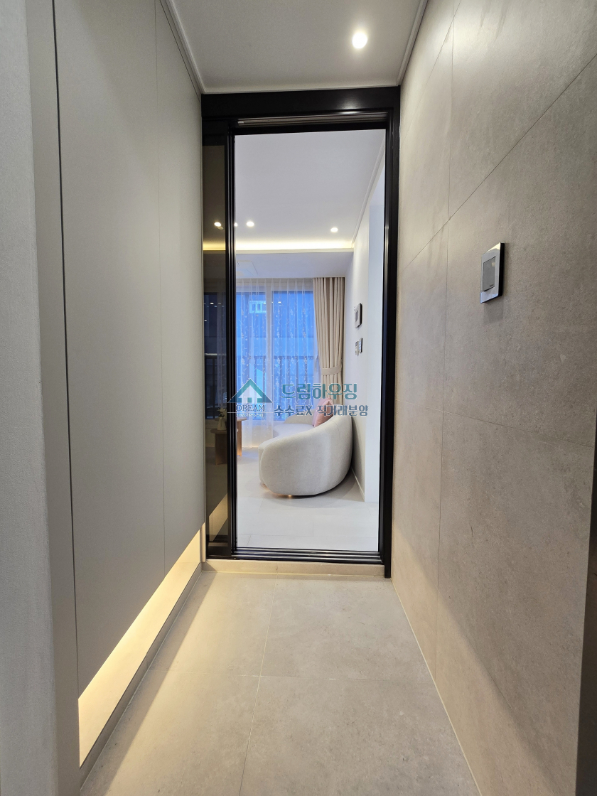 현관의 모습이고 전체적으로 고급타일로 분위기있게 연출되어있습니다.